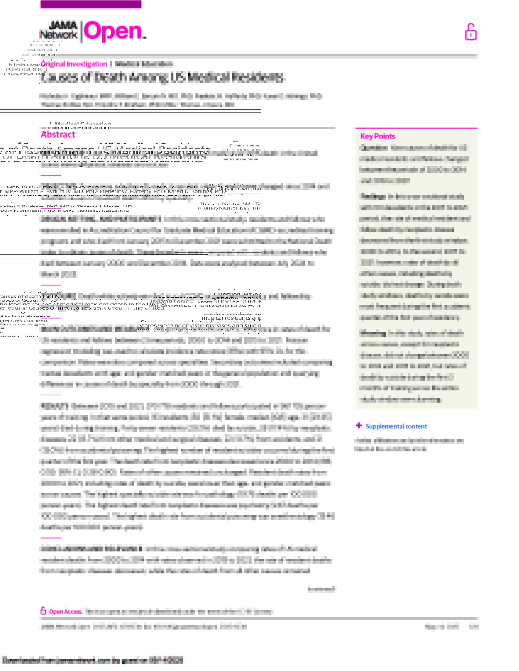 Study Published in JAMA Shows Leading Causes of Death Among Residents and Fellows in the US