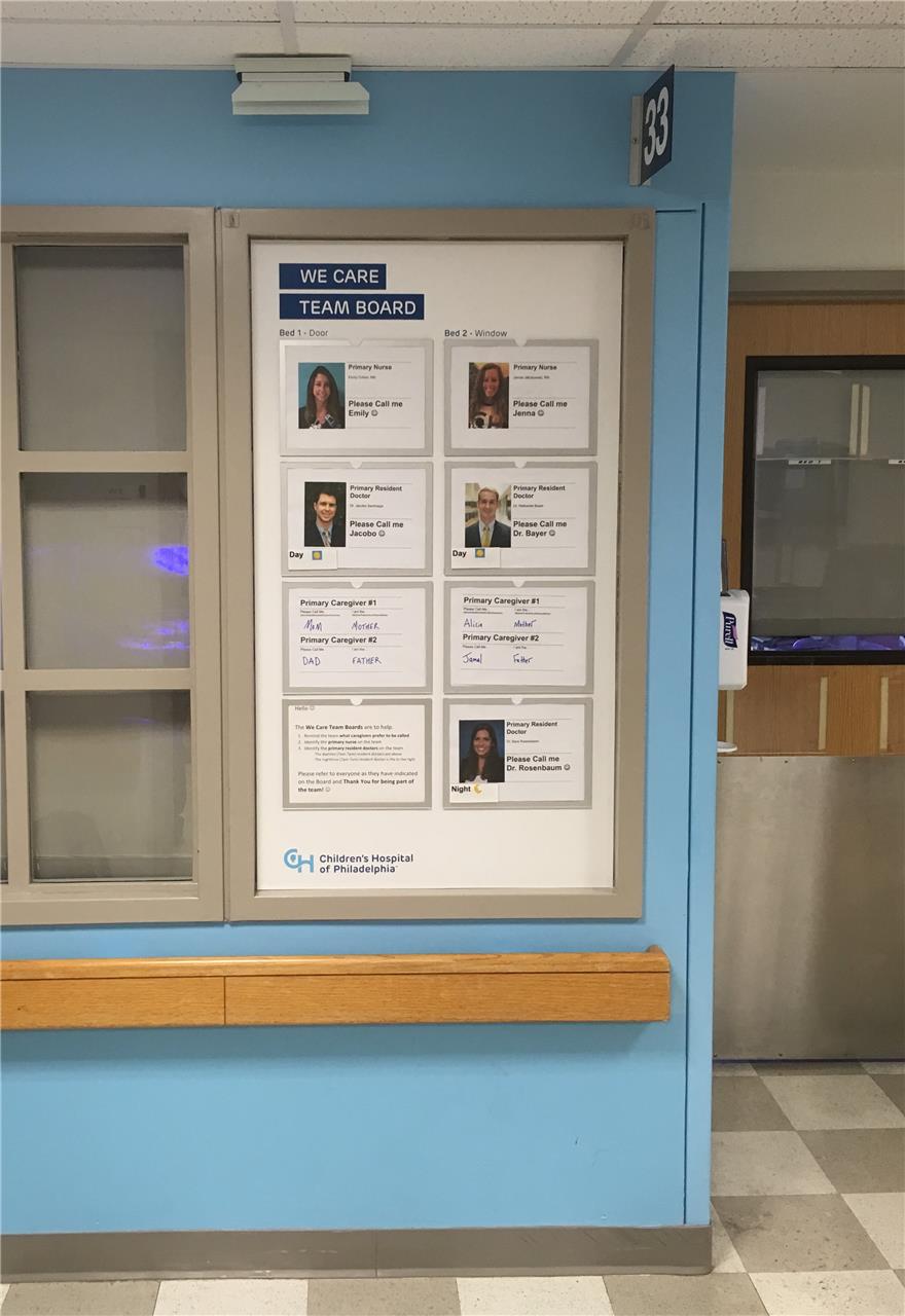 It is also a two-way street. Residents’ names and photos were posted outside the door, so caregivers could identify people on the patient’s care team and know their roles. Residents have reported that it is gratifying when parents know their names and can extend a more personal greeting.
